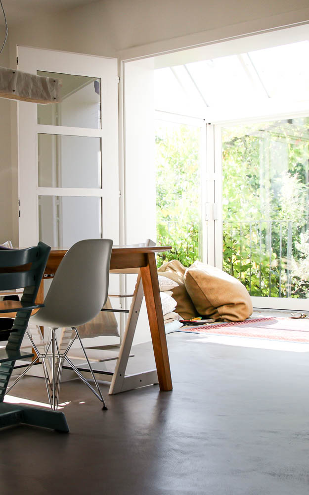 Hausrenovation mit neuem Bodenbelag als Microzementspachtel