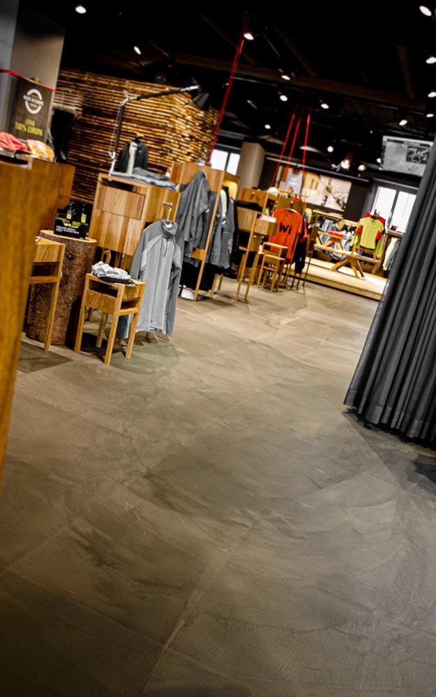 Velamia macht gewerbliche Fußböden schön modern, robust und langlebig. Einzigartige, handgefertigte Bodengestaltung im Ausstellungs- und Verkaufsraum. Mineralischer Belag auf Zementbasis mit individueller Einfärbung als abgestimmte Lösung für alle funktionalen, technischen und ästhetischen Anforderungen.